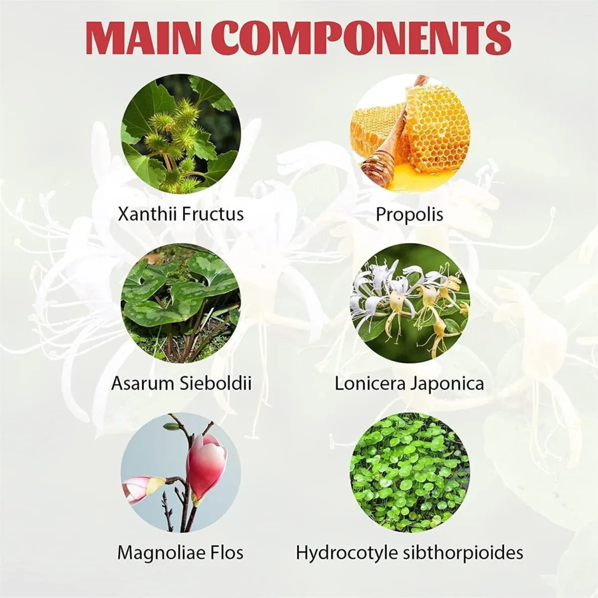 Main ingredients: Xanthium sibiricum, propolis, asarum sieboldil, lonicera japonica, magnolia flower and hydrocotyle sibthorpioides